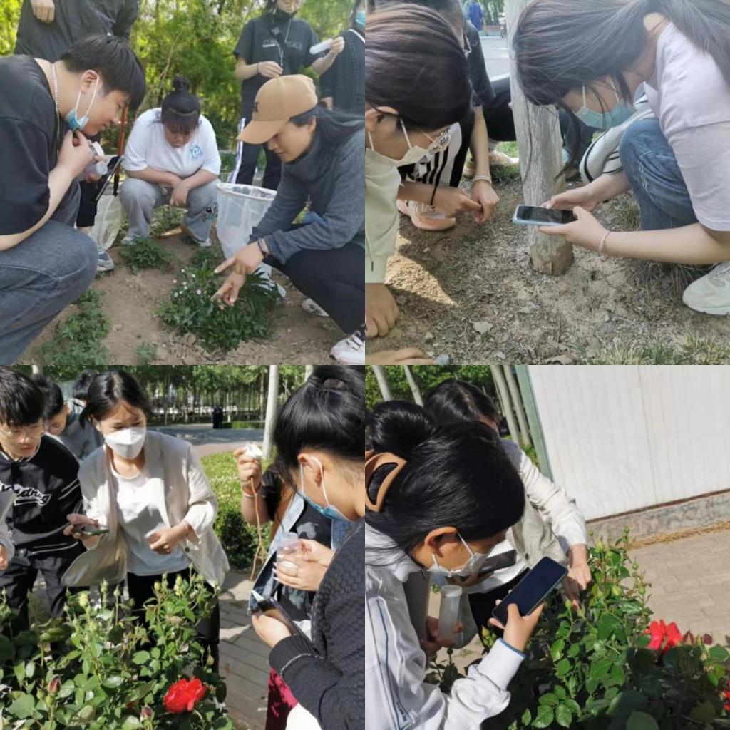 在实验课上,李晓莉老师带着同学们在校园内的蔷薇丛中、小树林里,找到了蚜虫、异色瓢虫、蝼步甲、食蚜蝇、采集花粉的意大利蜜蜂等昆虫,老师也向大家教授了一些物理防治昆虫的方法。课堂上,同学们学习兴趣高涨,围绕着老师积极的询问昆虫的种名。紧接着,同学们回到实验室里开始准备制作昆虫标本,李晓莉老师对昆虫标本制作的整个过程和注意事项等进行了演示和讲解。同学们积极比拼动手能力,制作昆虫标本。成功采集到50余种昆虫,200余件标本。