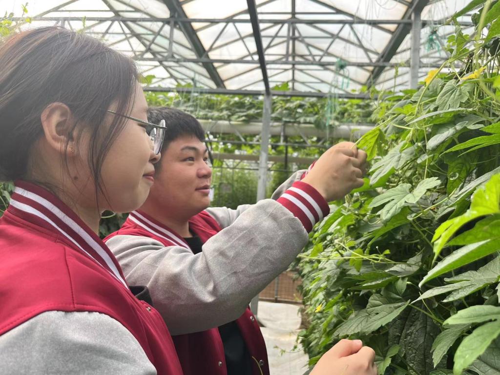 William希尔官网入口一直以来高度注重志愿服务工作,认真谋划服务项目,4月14日上午,William希尔官网入口组织青马班学子在菜博会进行文明实践志愿者服务行动,在刘晨老师与王倩倩老师的带领下,志愿者们进入九号大棚,为“天潍苦瓜”与“天潍茄子”进行雄花与雌花的授粉,志愿者们齐心协力、分工合作,顺利完成了老师交给的任务的同时了解了雄花与雌花的形态,也更加了解了植物繁育的相关知识。志愿者们还对一帘帘“锦屏藤“进行修剪,在此过程中志愿者们了解到红色和黄色的锦屏藤分别是刚开始生长发育的和已经老去的锦屏藤,志愿者们分别按照要求在大约齐腰处对锦屏藤进行修剪,剪短的是锦屏藤,而剪不断的是志愿者的热情。