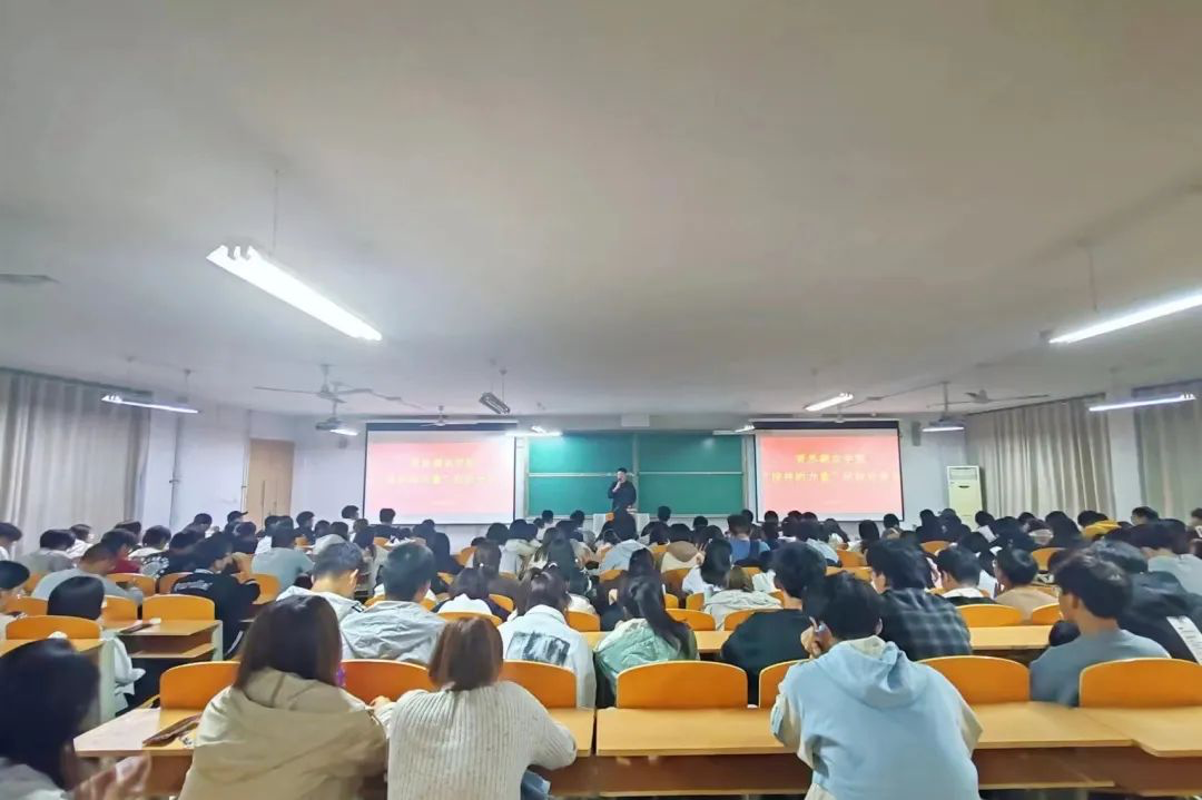 观影活动中,同学们全神贯注、沉浸式观影,切身体会青年对祖国建设的重要作用,“家国情怀”逐渐从冰冷的文字转变为强烈的民族自豪感,在此刻,名为爱国赤诚的种子在同学们心中生根、发芽;与此同时,“榜样的力量”经验分享会中,国家奖学金获得者马吉祥同学正为同学们分享学习经验,并结合自身的学习经历为同学们答疑解惑,除此之外,马吉祥同学还通过各种榜样先锋故事激励同学们锐意进取、奋力拼搏。