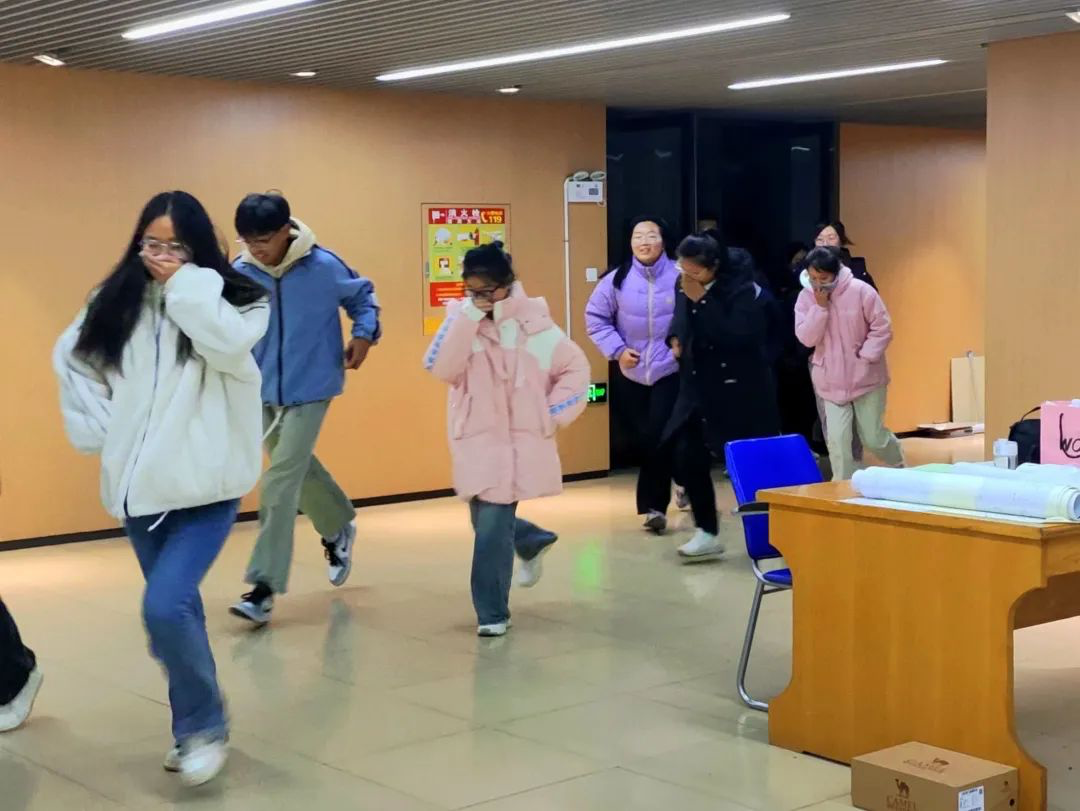 夜幕降临,尖锐的警报声和哨声响起,各班同学反应迅速,用毛巾捂住口鼻、弯腰俯身;不拥挤、不惊慌,快速按照预定疏散路线有序撤离,几分钟的时间在班人员全部成功逃生,整个演练过程有条不紊,成功达到了预期效果;随后,专业人员对灭火器的使用方法进行了讲述并做出正确示范,同学们对消防知识有了更加直观的了解。最后,葛树喆老师对此次活动进行了总结分析,讲解了火灾的危害及逃生的方法,同学们受益颇多。
