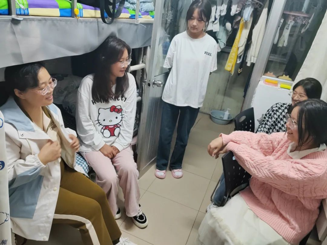 为提高员工对心理健康的科学认知水平,营造良好寝室氛围。于丽艳老师带领员工干部走进员工宿舍,深入了解同学们的生活状况,进行新学期寝室氛围调查工作,开展了“桃李不言·寝君入室”宿舍谈心谈话活动。