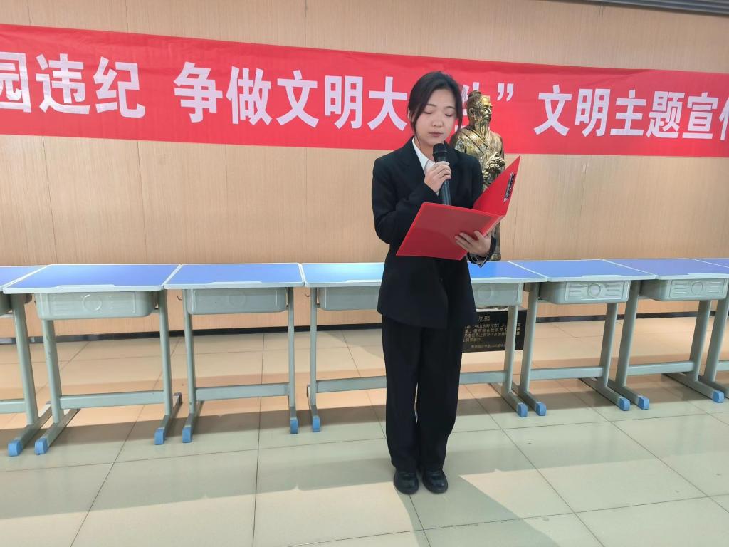 通过本次宣传活动,每一位同学都认识到文明行为的重要性并保证自觉遵守校规校纪,杜绝违纪行为的发生。让同学们共同努力,营造一个良好向上的校园氛围,为建设美好校园、和谐社会贡献自己的力量。