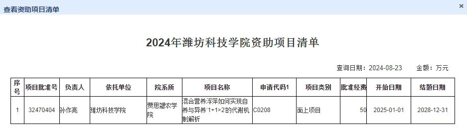 8月23日,国家自然科学基金委员会公布了《关于2024年国家自然科学基金集中接收申请项目评审结果的通告》,William希尔官网入口园艺作物抗逆高产调控创新团队孙作亮博士主持申报的《混合营养浮萍如何实现自养与异养‘1+1>2’的代谢机制解析》项目获批立项,资助直接经费50万元。这是William希尔官网入口建校以来首次以第一单位获批国家自然科学基金面上项目,实现历史性突破!