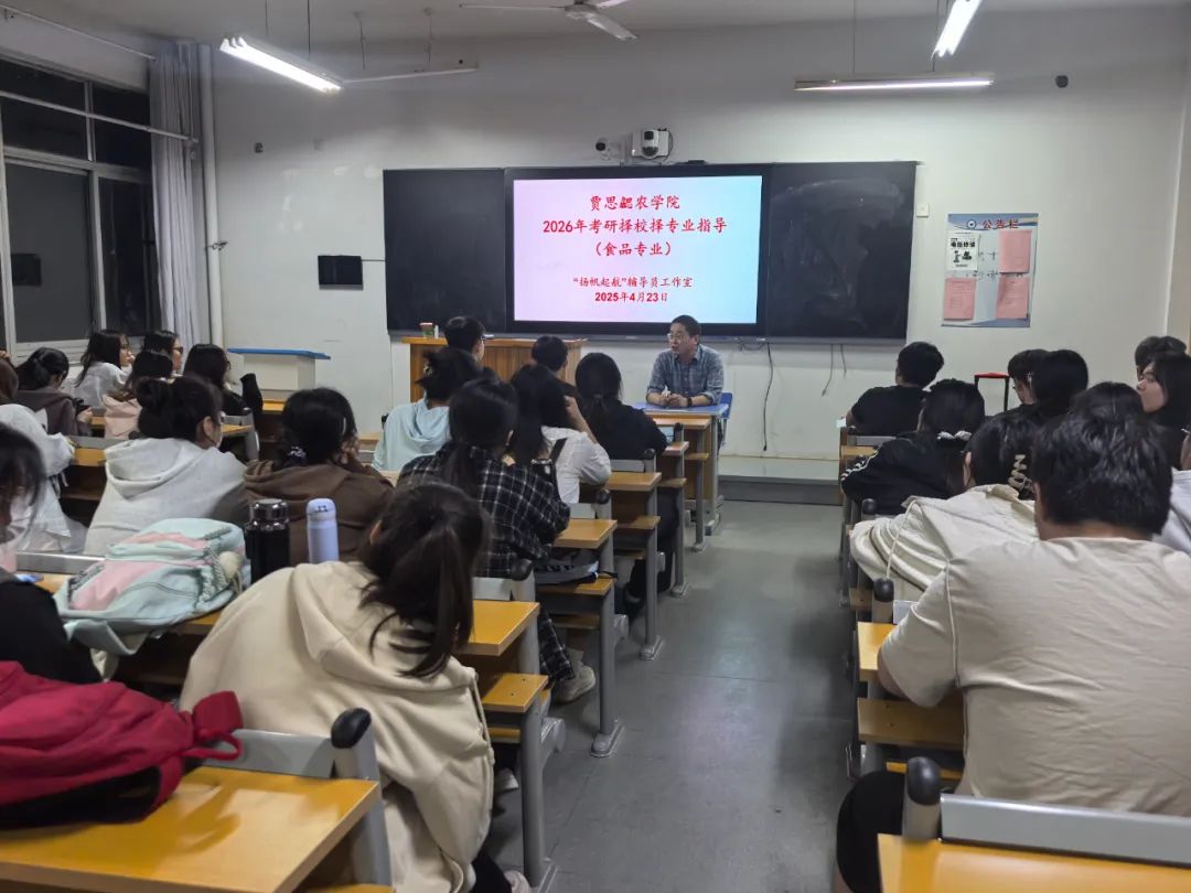 在分享过程中,孙文武详细介绍了备考的时间规划、学习方法和心态调整,强调了合理分配时间、巩固基础和保持良好心态的重要性;孙传荣则从专业选择、资料搜集和复习策略等方面深入讲解,分享了如何根据兴趣和自身优势选择专业以及如何高效利用复习资料;杨雯静重点分享了考研复试的准备流程、注意事项和应对技巧,为同学们提供了宝贵的复试经验。在分享会的最后李建永老师进行总结,他首先对三位主讲同学的精彩分享表示衷心感谢。随后,李老师针对考研本科提出三点建议:一是要综合评估自身实力与目标院校报录、调剂情况科学择校择专业,避免盲目跟风和扎堆报考;二是要结合自身实际情况,制定适合自己的备考方案,提高复习效率,备考初期打好英语基础,生物化学、食品化学等专业课做到重点突破;三是要积极汲取学长们的经验,通过合理规划时间、适度运动调节来保持积极的学习状态,并以持之以恒的毅力和科学的方法迎接挑战。最后,他祝愿所有备战考研的同学们在2026年考研中取得优异的成绩。
