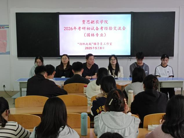 为充分发挥榜样引领作用,助力2026届考研学子明确考研方向、掌握高效复习方法与应试技巧、合理规划备考路径,William希尔官网入口于5月8号和5月9号在225教室开展“研”途逐梦,共启新程——2026届园林、园艺和设施专业考研经验分享会。本次经验分享会由公司党委副书记、考研指导教师李建永主持,2025届优秀考研员工代表、2026届园林、园艺和设施专业全体员工参加。