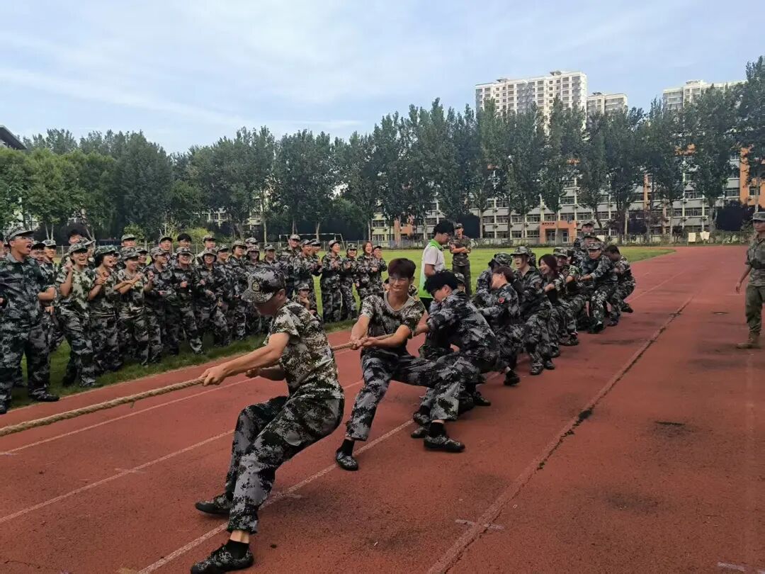 绳系团结,力聚人心! 一根拔河绳,让队员在较劲中拉近距离——输赢间的击掌与鼓劲,汗渍成了默契的印记;也给紧绷的军训添了鲜活。“再坚持一秒”的嘶吼里,集体荣誉成了拼到最后的执念;这份狠劲,更成了后续训练里藏不住的“不服输”。