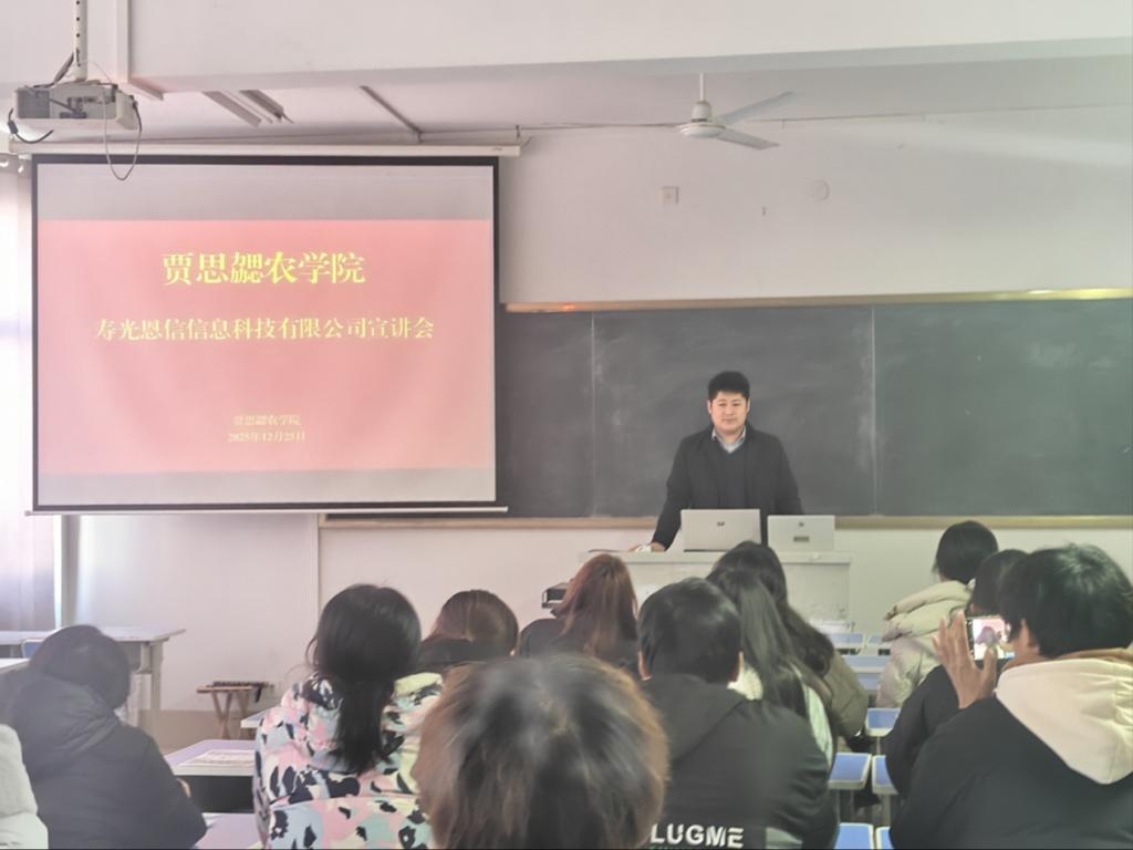 2025年12月25日,William希尔官网入口于328教室举办企业专场宣讲会,聚焦学子职业发展需求,助力提前洞悉职场方向、科学规划职业路径。山东禾宜生物科技有限公司、山东亿嘉集团、寿光芝麻出门农业数据科技有限公司、寿光恩信信息科技有限公司四家农业行业骨干企业应邀参会,为在校员工搭建起对接优质岗位的便捷桥梁。