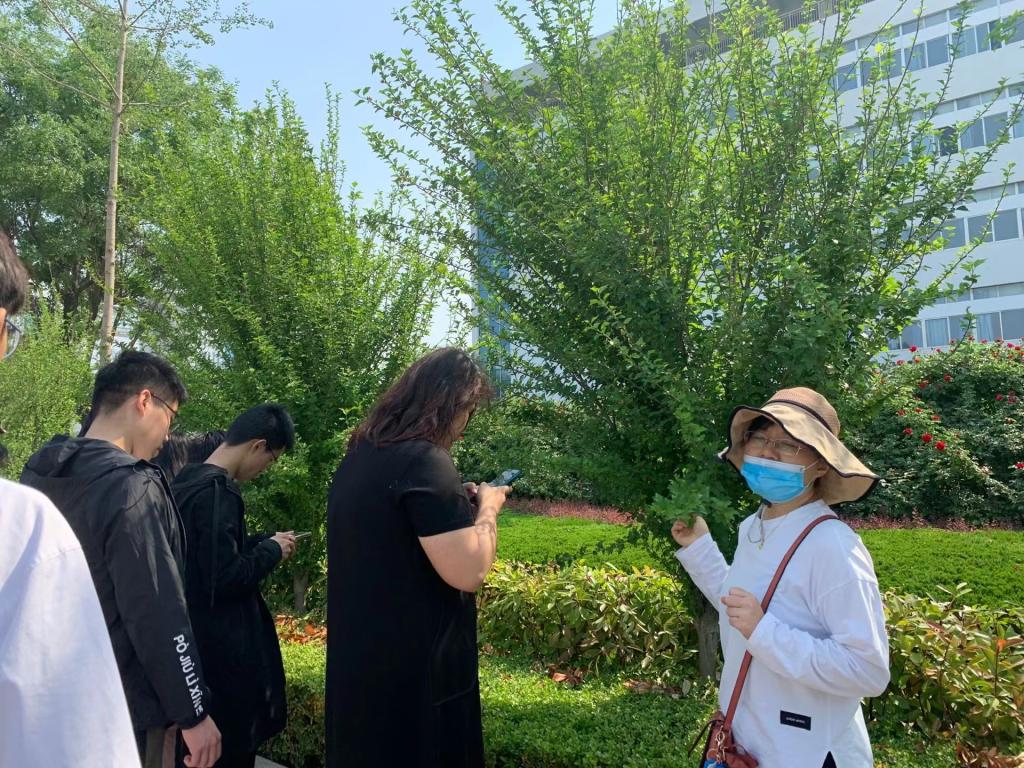 参观过程中,老师们细致耐心的讲解了校园各处的植物形态特征和种类,带领同学们观察了园内植物的生长情况及特点,同学们都围绕在老师身旁,仔细默察植物布局特点,不时的记录重要信息,绘制植物图样,准备下课后更加细致的进行研究。
