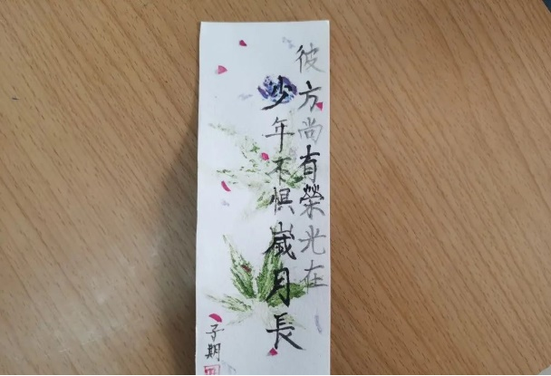 活动中,每一个书签都被同学们赋予了特殊的意义。同学们将花瓣与翠叶粘贴在卡纸上,再用画笔进行创作,用鲜艳的颜色绘出心中的美好,用作品诉说着内心的愿望。也有同学直接在叶片和花瓣上进行创作,这样的书签更加生动,让大家一目了然,更能体验到大自然的魅力。