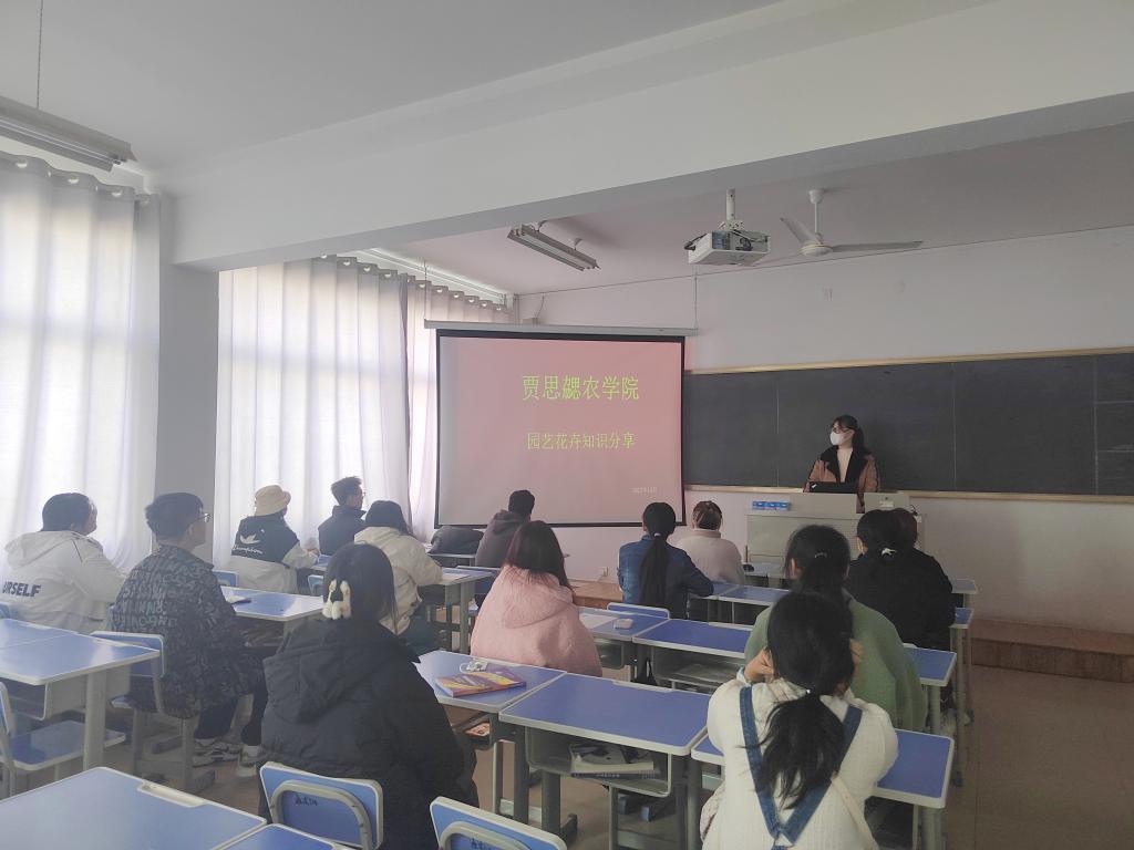 在此过程中,同学们都受益匪浅,逐渐了解了花的组成部分,也认识了各种各样的花卉品种,同时也了解到花的成长所需的五大要素——光照、温度、水份、土壤、空气,要想花开的好,种子的挑选也是至关重要的一步,最后该同学分享了花卉商品的生产,让同学们对花卉的认识更加系统、全面,深刻感受了园艺花卉的魅力。